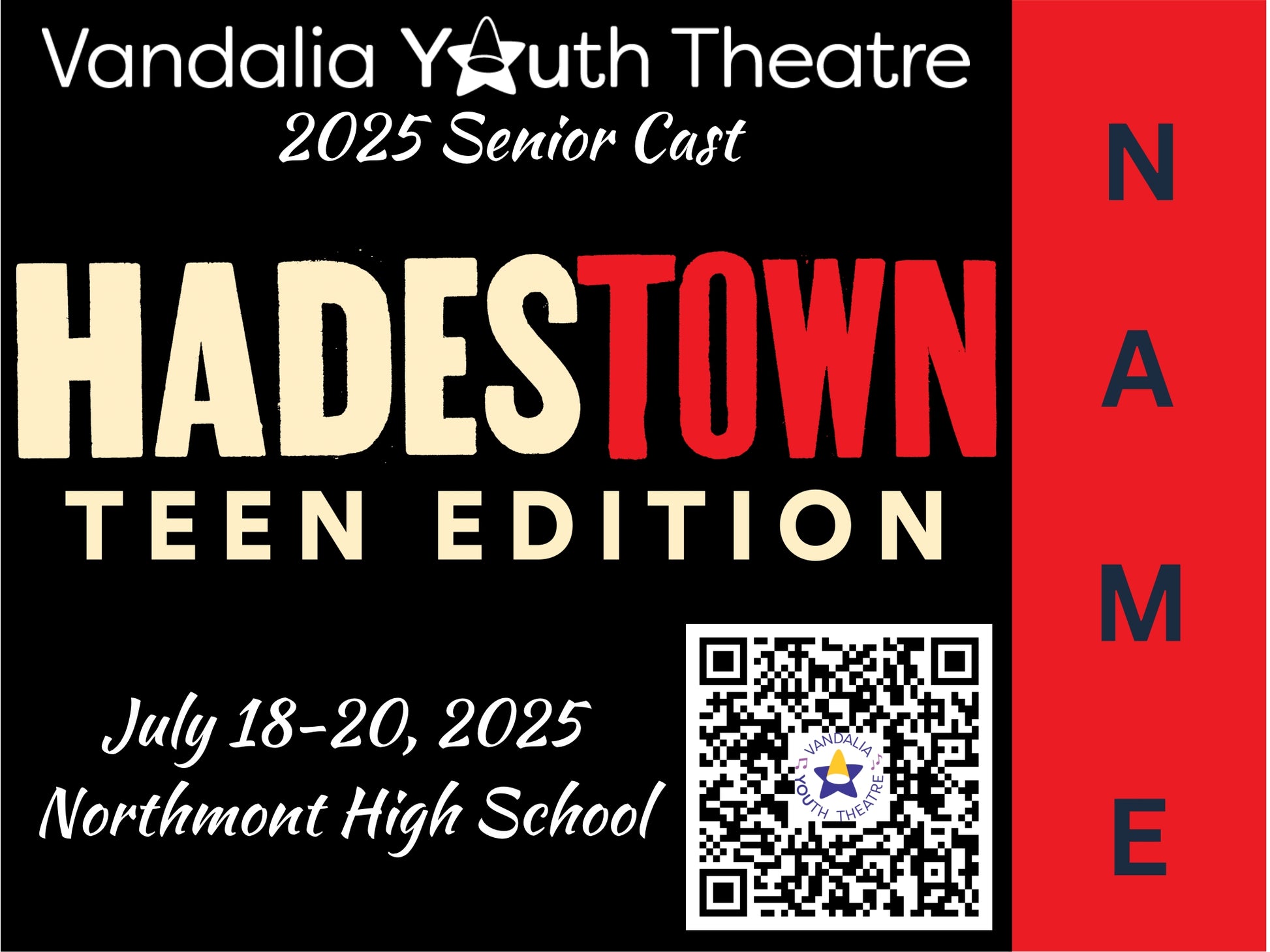 2025 Vandalia Youth Theatre Production Yard Signs